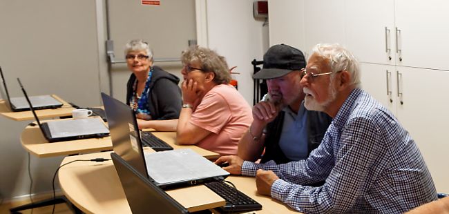 We hebben een beveiligd, draadloos netwerk. Je mag ook je eigen laptop of tablet meenemen natuurlijk! En wil je wat vragen of heb je hulp nodig, dan staan er altijd vrijwilligers voor je klaar.